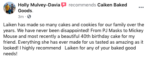 Hi, my name is Laiken Wilson, I have been baking with my Dad since I have been a little girl.